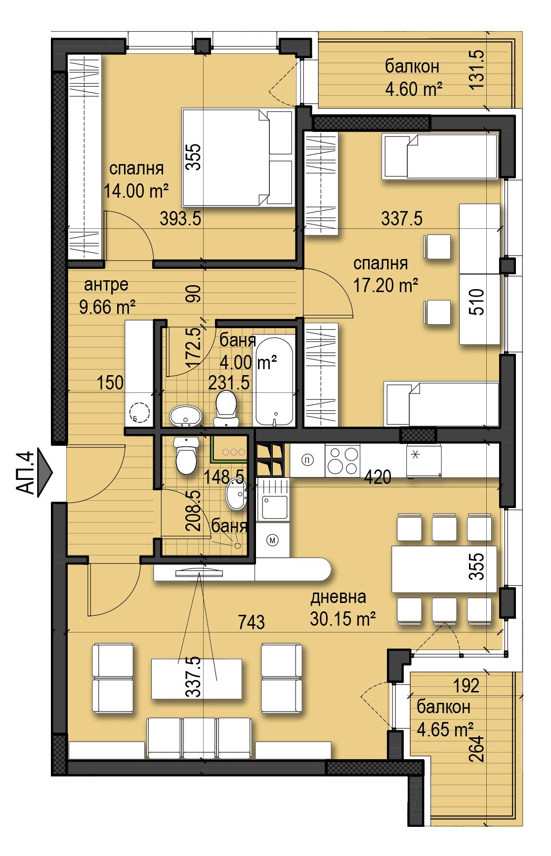 Етаж 2 Апартамент 4 101.67 17.47 119.14